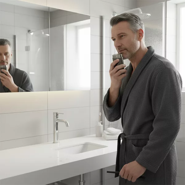 Nagyon tetszik, milyen könnyű tisztítani. Csak leveszem a borotvafejet és kiöblítem – pár másodperc alatt kész, mintha új lenne.