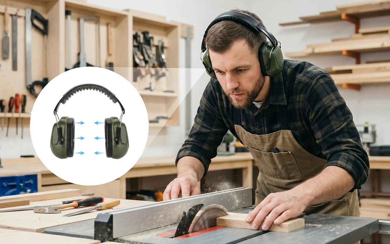 A műhelyemben viselem őket, amikor mennek az elektromos szerszámok. A párnázás puhán fekszik fel, a pánt nem nyom, és órákig kényelmesen tudok dolgozni.