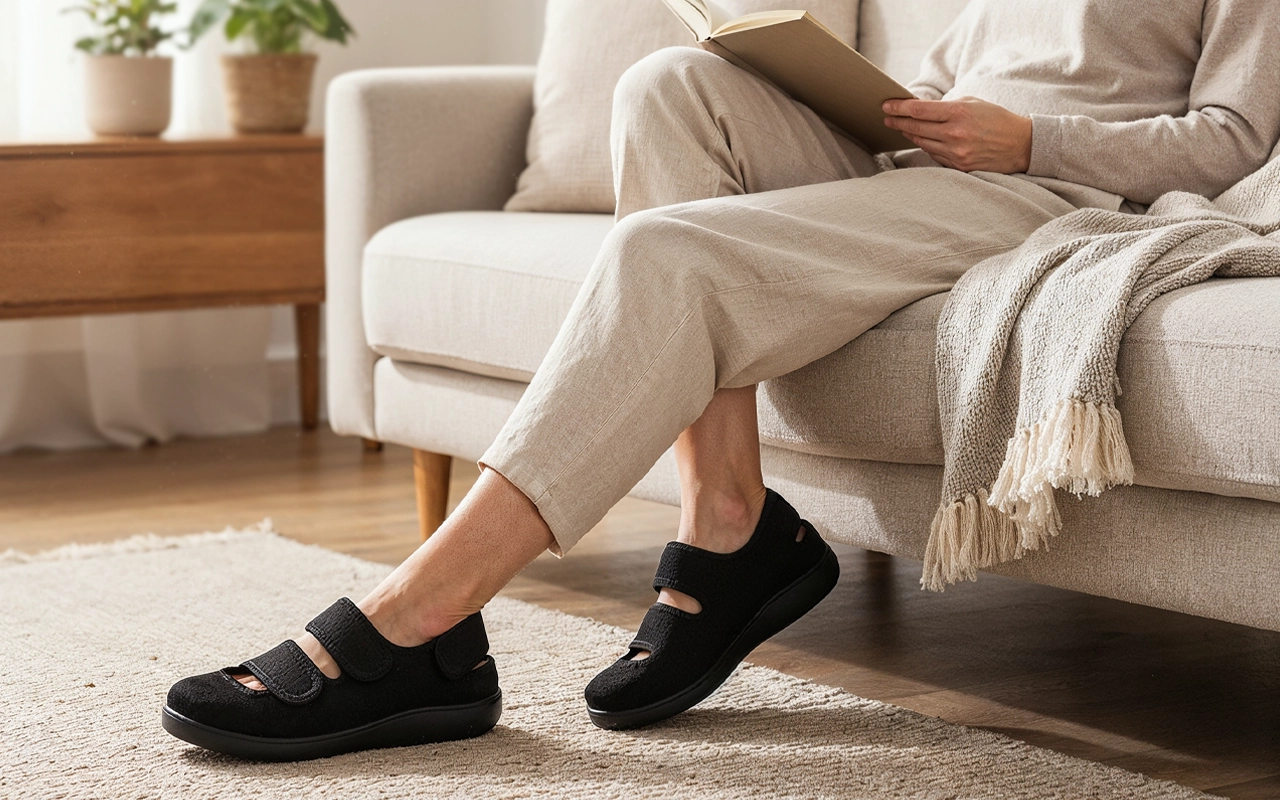 Az állítható pántok biztosan tartják a cipőt anélkül, hogy szorítanának. Ez egész nap személyre szabott kényelmet biztosít, még akkor is, ha a láb megduzzad vagy megváltozik a formája.
