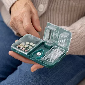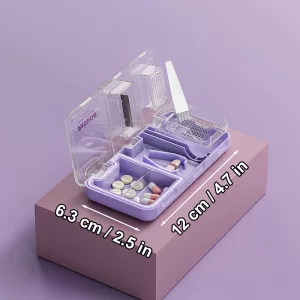 Három kulcsfontosságú funkció egy egyszerű eszközben egyesül. Tárolja, felezze és zúzza össze a tablettákat rendetlenség és felesleges erőfeszítés nélkül.
