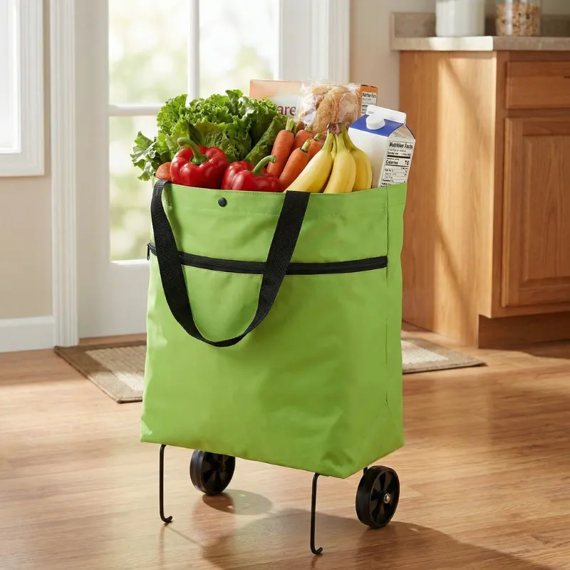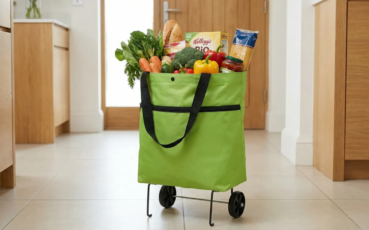 Hetente kétszer tolom ezt a kocsit a szupermarketbe. Könnyedén viszi a tejet, kenyeret, zöldséget és tisztítószereket. A masszív táska megakadályozza, hogy bármi felboruljon.
