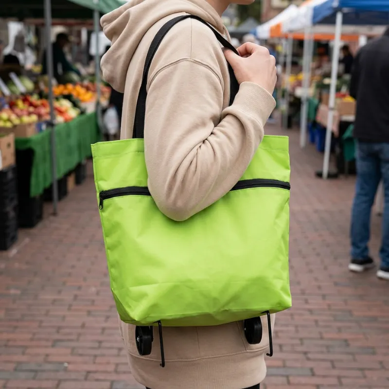 Bevásárlókocsink több szatyor tartalmát is elbírja veszélyes meghajlás nélkül. Tartós szövete ellenáll a szakadásoknak, így a gyümölcsök, kenyér és üvegek biztonságban maradnak.