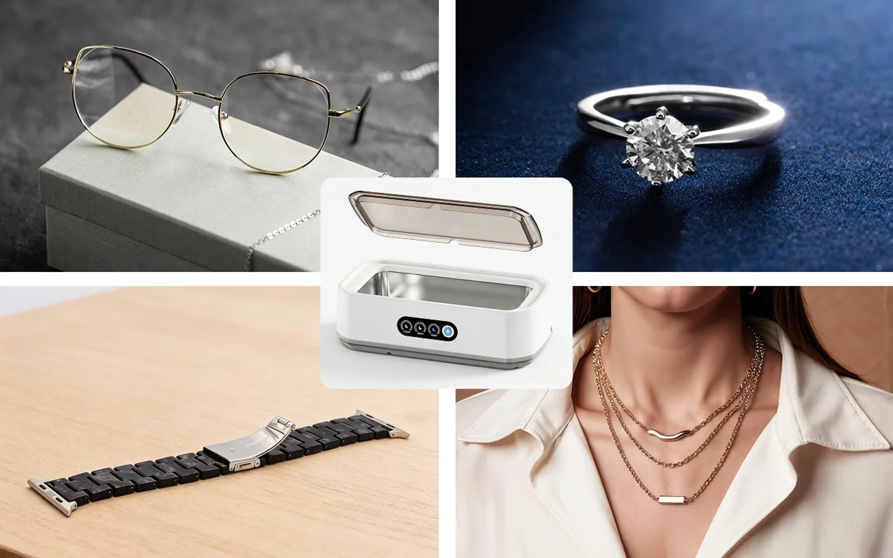 Különféle kiegészítők, eszközök és háztartási cikkek egyszerű tisztítása. Mindent, az ujjgyűrűtől a műfogsorig, frissen, biztonságosan és ragyogó tisztán tart.