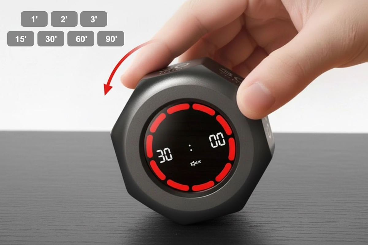 Fordítsd meg az Ortorex időzítőt az azonnali indításhoz. Nincsenek zavaró gombok vagy beállítások, így gyorsan használható.