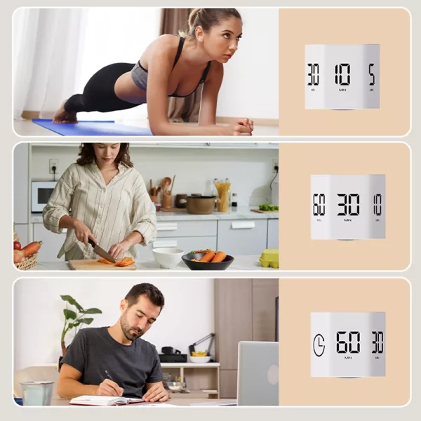 Minden nap használom az időzítőt a fitnesz edzéseimhez. Megfordítom és máris mozgok, semmi zavaró tényező. Szeretem, hogy masszív, és nem törik el, ha leesik a szőnyegre.
