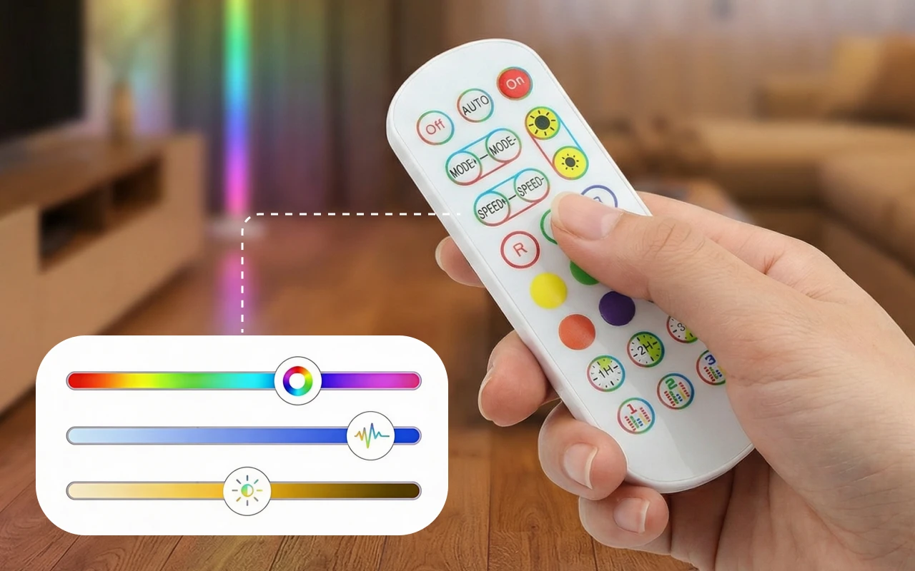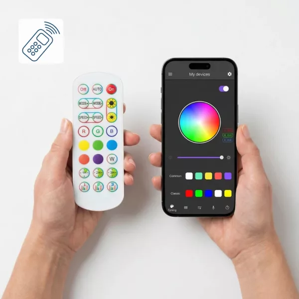 Váltson több millió szín között az egyszerű vezérléssel. Állítsa be gyorsan a tökéletes hangulatot bulikhoz, pihenéshez vagy munkához.