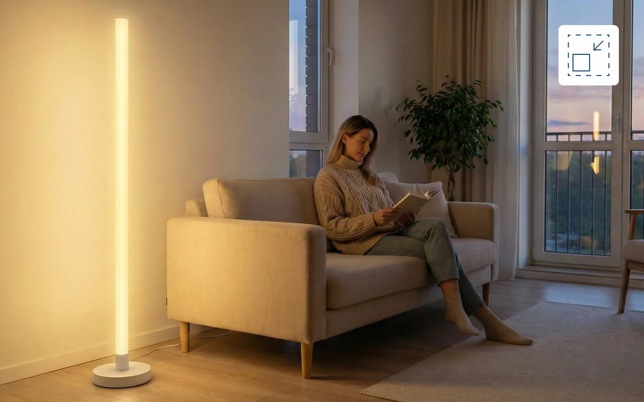 A karcsú, magas váz bármely sarokba tökéletesen illeszkedik. Tartsa szabadon a padlót, miközben modern stílussal világítja meg a szobát.