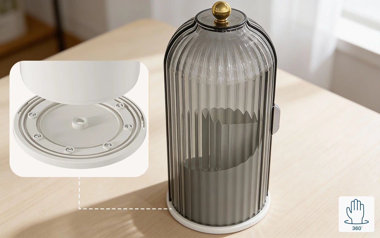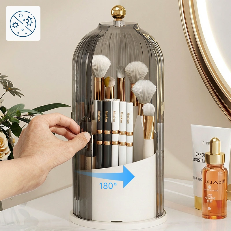 Az átlátszó fedél védi szépségápolási eszközeit a portól és a fröccsenésektől. A kefék frissek és foltmentesek maradnak minden nap, hibátlan eredményeket biztosítva.