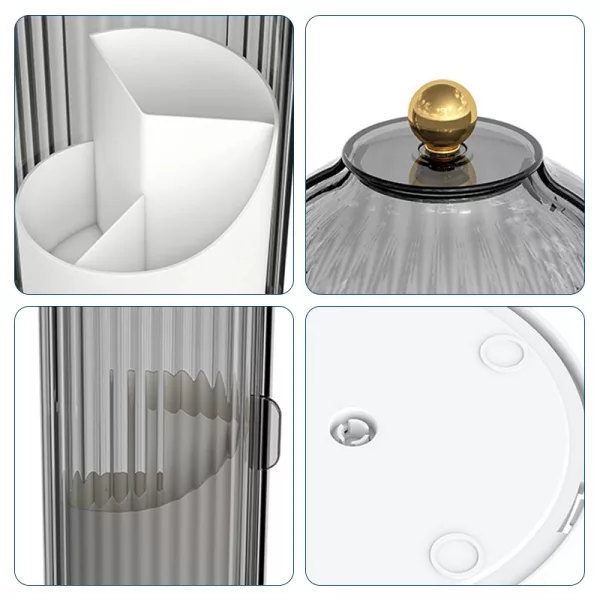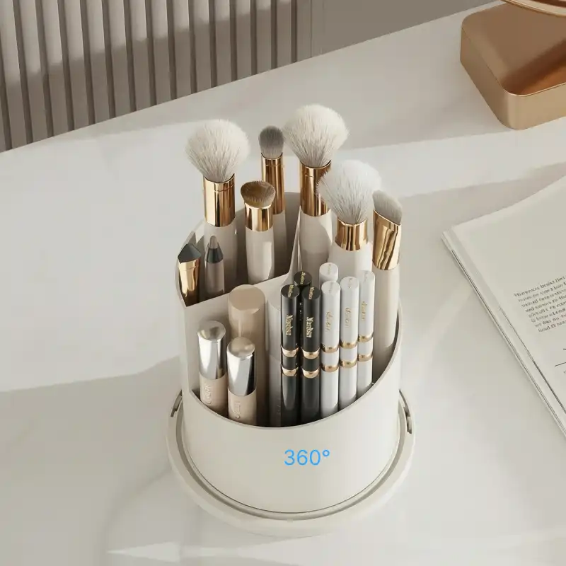 Tökéletesen elfér a fürdőszobai polcomon, és a forgó tálca minden ecsethez könnyű hozzáférést nyújt. Nagyon elégedett vagyok vele!