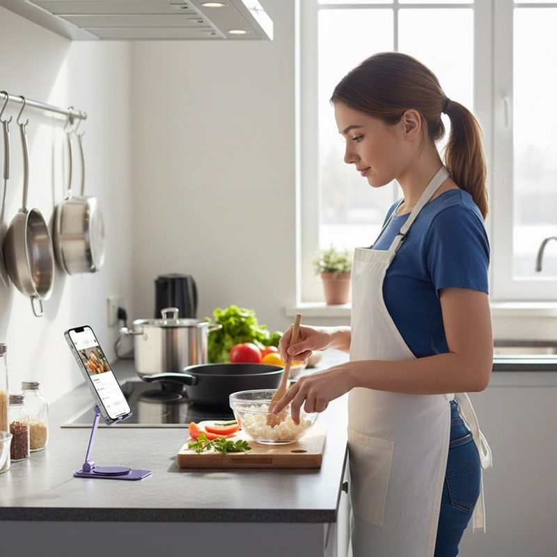 Nyakfájósként nagyon nagyra értékelem ezt az állványt. Gyorsan feljebb vagy lejjebb tudom tenni, és stabilan tartja a telefonom a hosszú görgetős esték alatt.