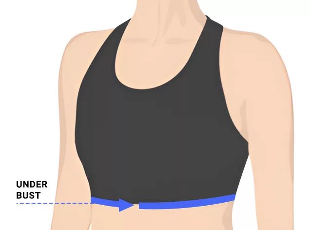 - 2. A mell alatti körméret megállapításához helyezd a mérőszalagot a bordáid köré, közvetlenül és egyenletesen a mell alatt.
