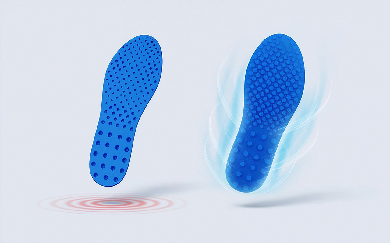 A munkavédelmi bakancsomban és az edzőcipőmben is használom őket. A kis masszírozó pontok oldják a lábfeszültséget, a rezgéscsillapítás pedig segít, hogy a régi bokasérülésem nyugodt maradjon.