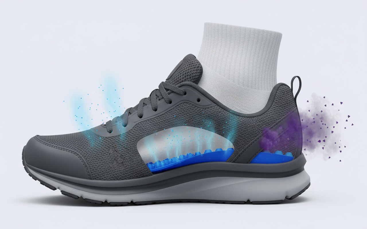 Frissen tartja a cipőket azáltal, hogy megakadályozza a kellemetlen szagok kialakulását. A légáteresztő anyag szárazon és kényelmesen tartja a bőrt.