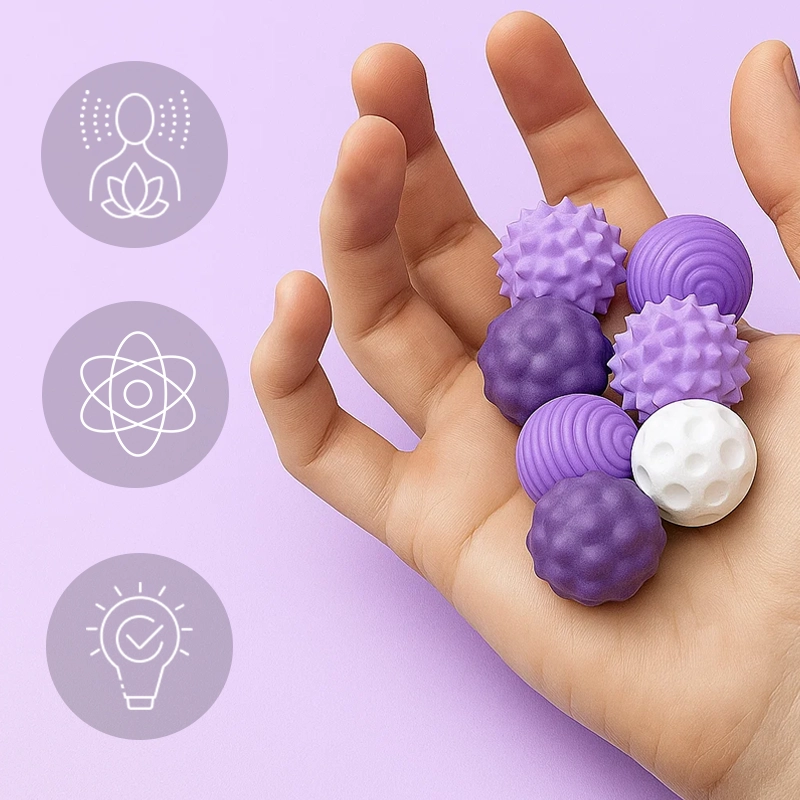 Találjon megnyugvást a nyugtalan kezek számára a zsúfolt napokon vagy megbeszéléseken. Az Ortorex labdák nyugtató kényelmet nyújtanak, elméjét pedig kiegyensúlyozottá teszik. Minden texturált felület kielégítő visszacsatolást ad, segítve az ellazulást.