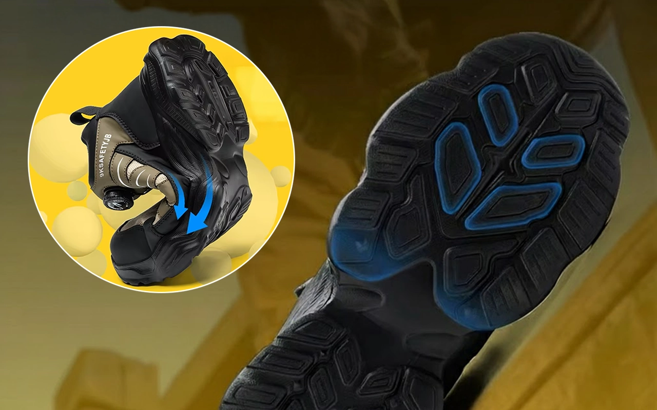 Az acélmerevítés megvédi a lábujjakat a leejtett eszközöktől vagy törmeléktől. Az átszúrásálló talp megakadályozza, hogy éles tárgyak elérjék a lábat.