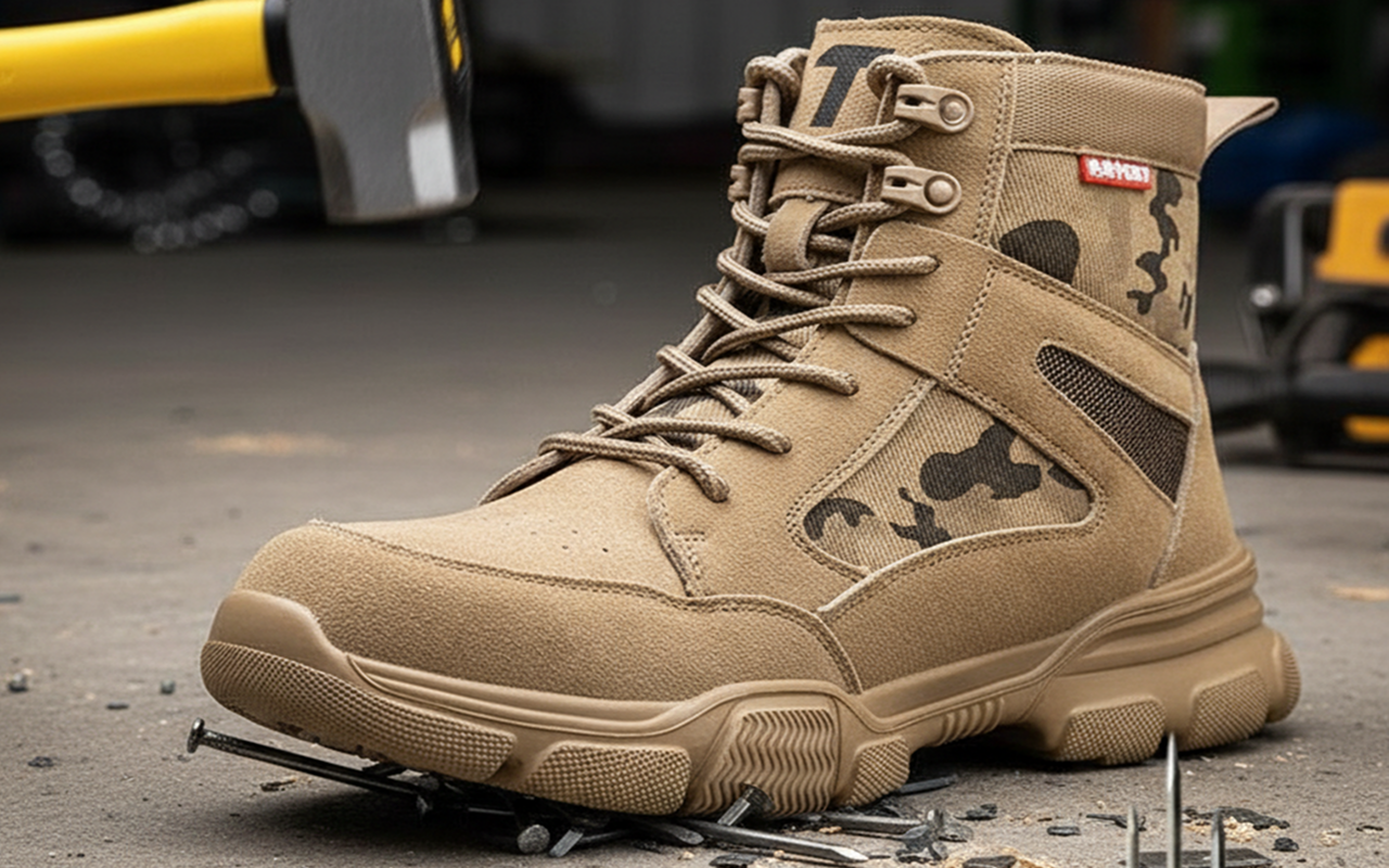 Megerősített acél védi a lábat az éles leeső tárgyaktól vagy zúzódásoktól. Erős talp könnyedén ellenáll a szögek vagy törmelék átszúrásának.