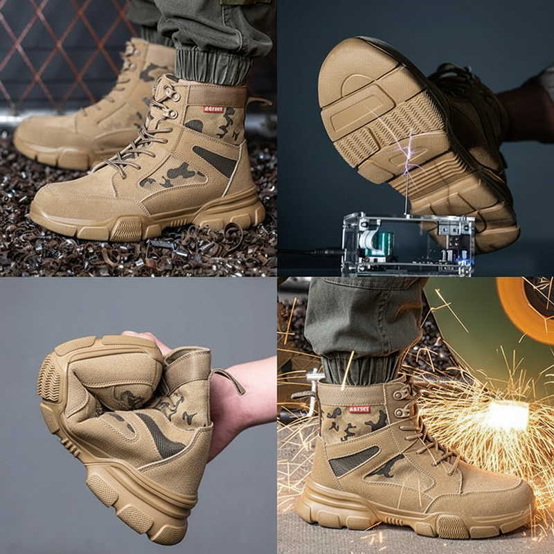 Megerősített acél védi a lábat az éles leeső tárgyaktól vagy zúzódásoktól. Erős talp könnyedén ellenáll a szögek vagy törmelék átszúrásának.