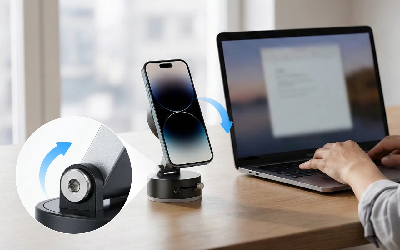 Nagyon elégedett vagyok az állvánnyal az otthoni irodámban. A mágnesek megbízhatóak, így a telefonom soha nem remeg a megbeszélések alatt. Gond nélkül befér a hátizsákomba is.