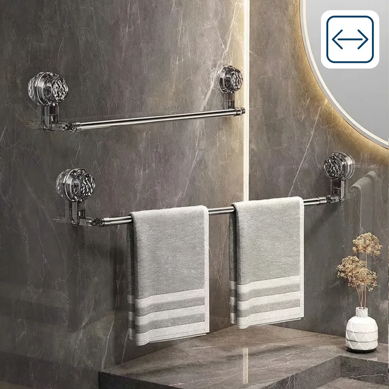 A rúd hossza meghosszabbítható vagy lerövidíthető, hogy minden igényt kielégítsen. Igazítsa az állványt törölközőkhöz, konyharuhákhoz vagy akár ruhákhoz.