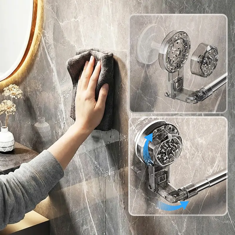 A kisméretű fürdőszobánkba vettem. A rúd állítható, így illeszkedik a falfelülethez, és a tapadókorongok sokkal erősebben tapadnak az üveghez, mint vártam.