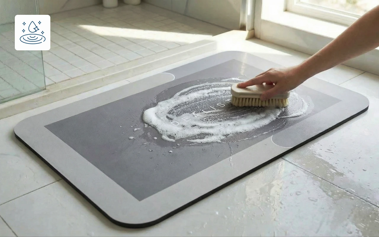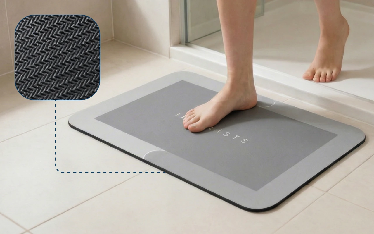 Amint kilépek, azonnal felszívja a vizet. Nincs többé elcsúszás a vizes padlón, és a fürdőszobám mindig rendezettnek tűnik. Ráadásul nagyon könnyű tisztítani.