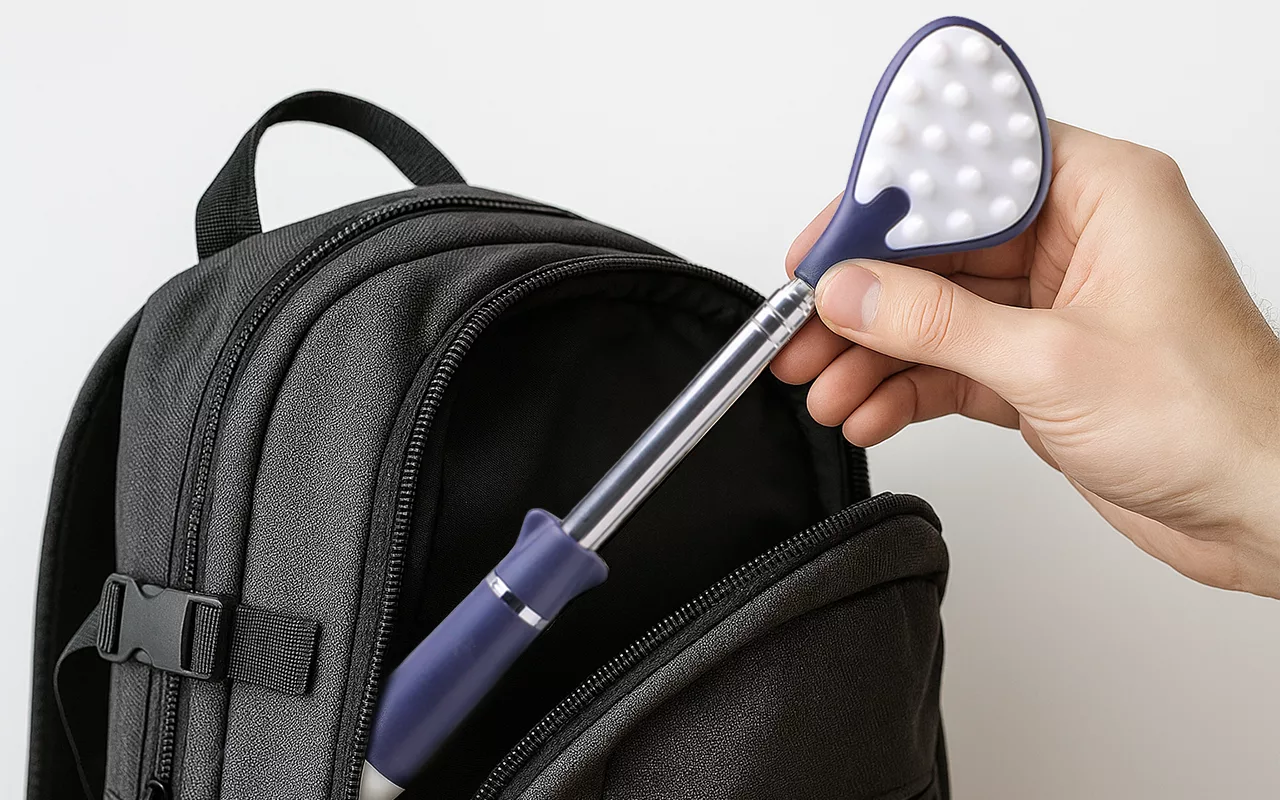 Belefér a táskámba, így ha viszket a hátam a munkahelyen, meg tudom oldani. Nagyon jól jön, hogy kihúzható, így a nehezen elérhető helyeket is elérem.