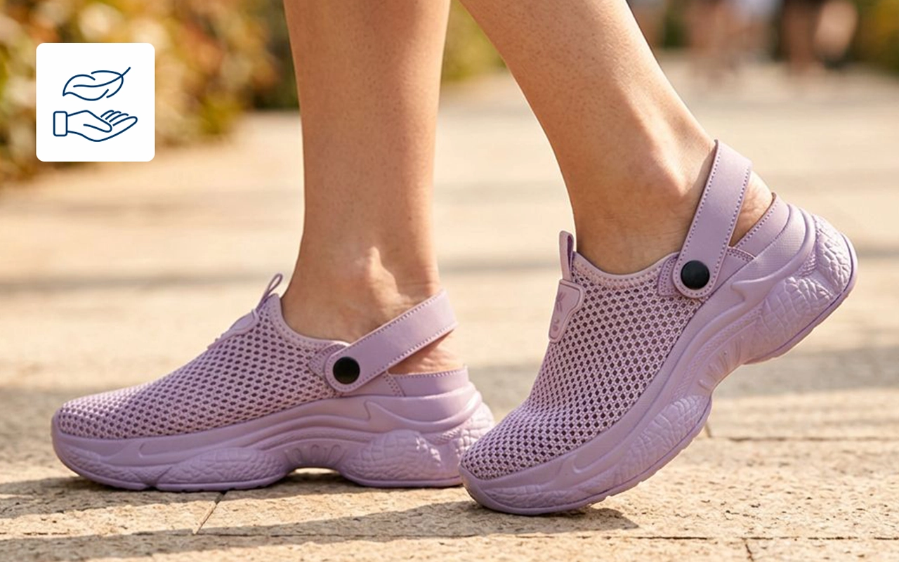 Ezek a laza cipők lettek a kedvenceim bevásárláshoz és parki sétákhoz. Tollkönnyűek, nem dörzsölik a lábujjaimat, és a sarokpánt biztonságosan a lábamon tartja őket.