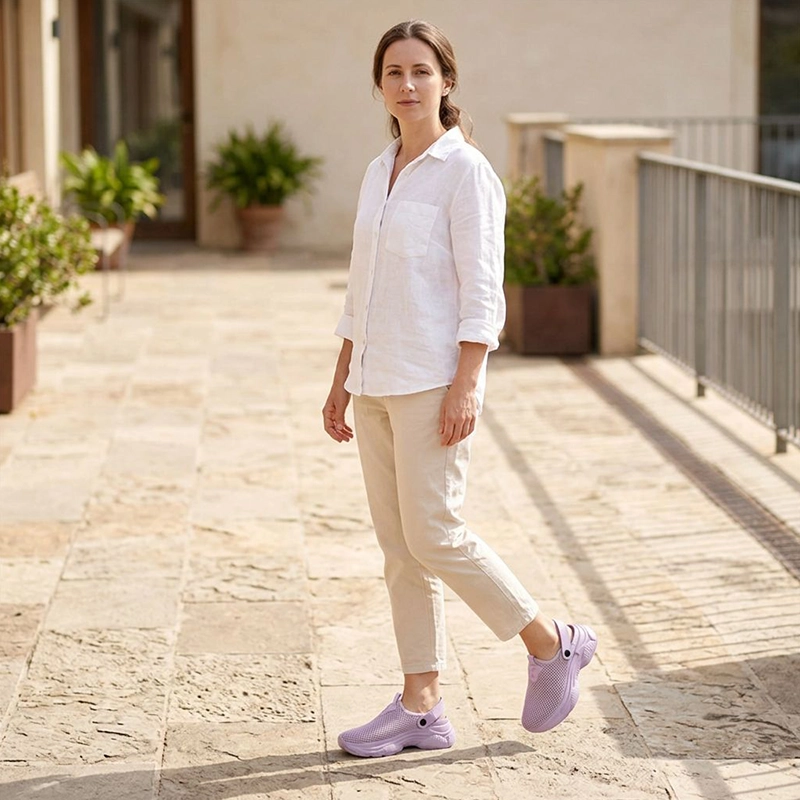 Ezek a laza cipők lettek a kedvenceim bevásárláshoz és parki sétákhoz. Tollkönnyűek, nem dörzsölik a lábujjaimat, és a sarokpánt biztonságosan a lábamon tartja őket.