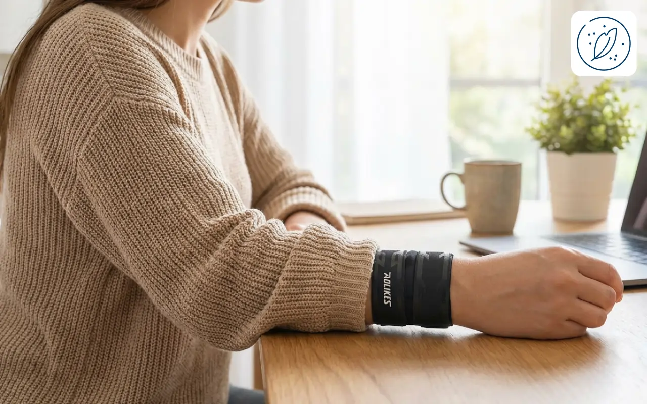 A feleségem ínhüvelygyulladásra használja ezt a karcsú pántot. Egész délután tud főzni, takarítani és kertészkedni kevesebb fájdalommal, és alig érzi a pulóver alatt.