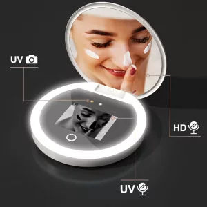 Egyszerűen ellenőrizheted a bőröd biztonságát minden egyes napon a szabadban. Erős világítás a legjobb smink vagy fényvédő fedéshez bárhol. Kerüld el a kihagyott területeket, amelyek gyorsan bőrproblémákat okozhatnak. Kis mérete miatt könnyen elfér bármelyik táskában vagy zsebben.