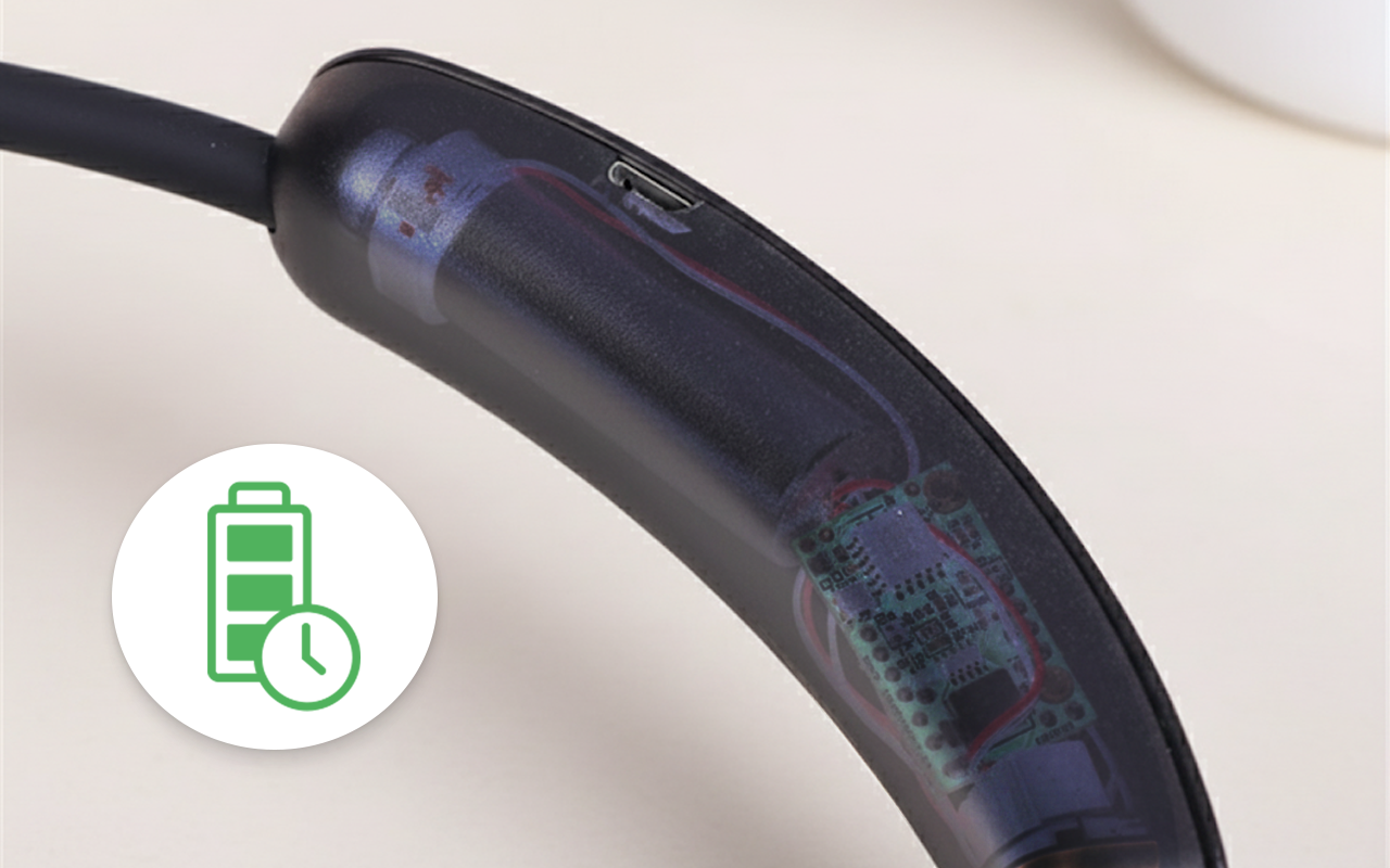 Hosszú az akkumulátor ideje, ezért nem kell állandóan töltenem. Nagyon kényelmes akár órákig viselni.