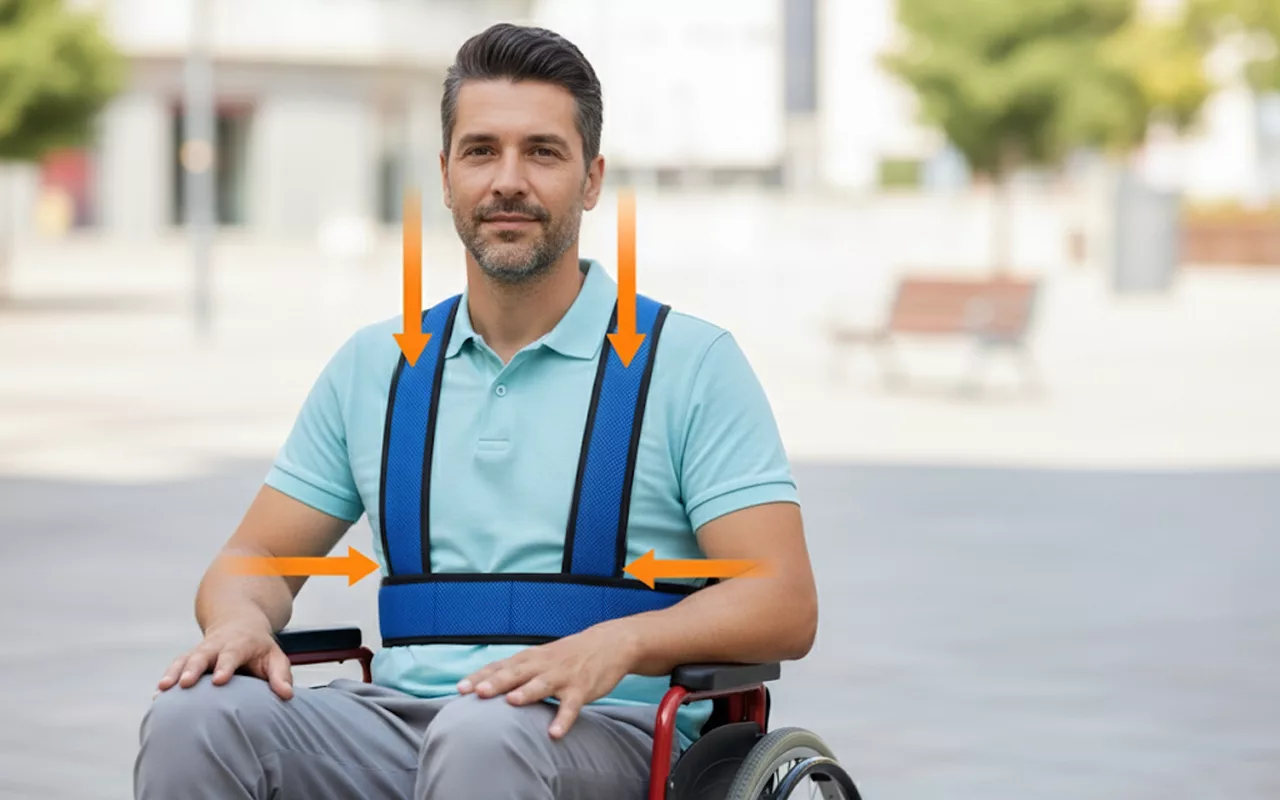 A vállpántok használat közben egyenesen és stabilan tartják az embert. Ez segít megelőzni a veszélyes elcsúszást vagy az előredőlést a székben.