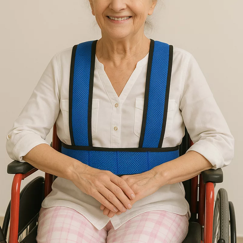A vállpántok használat közben egyenesen és stabilan tartják az embert. Ez segít megelőzni a veszélyes elcsúszást vagy az előredőlést a székben.