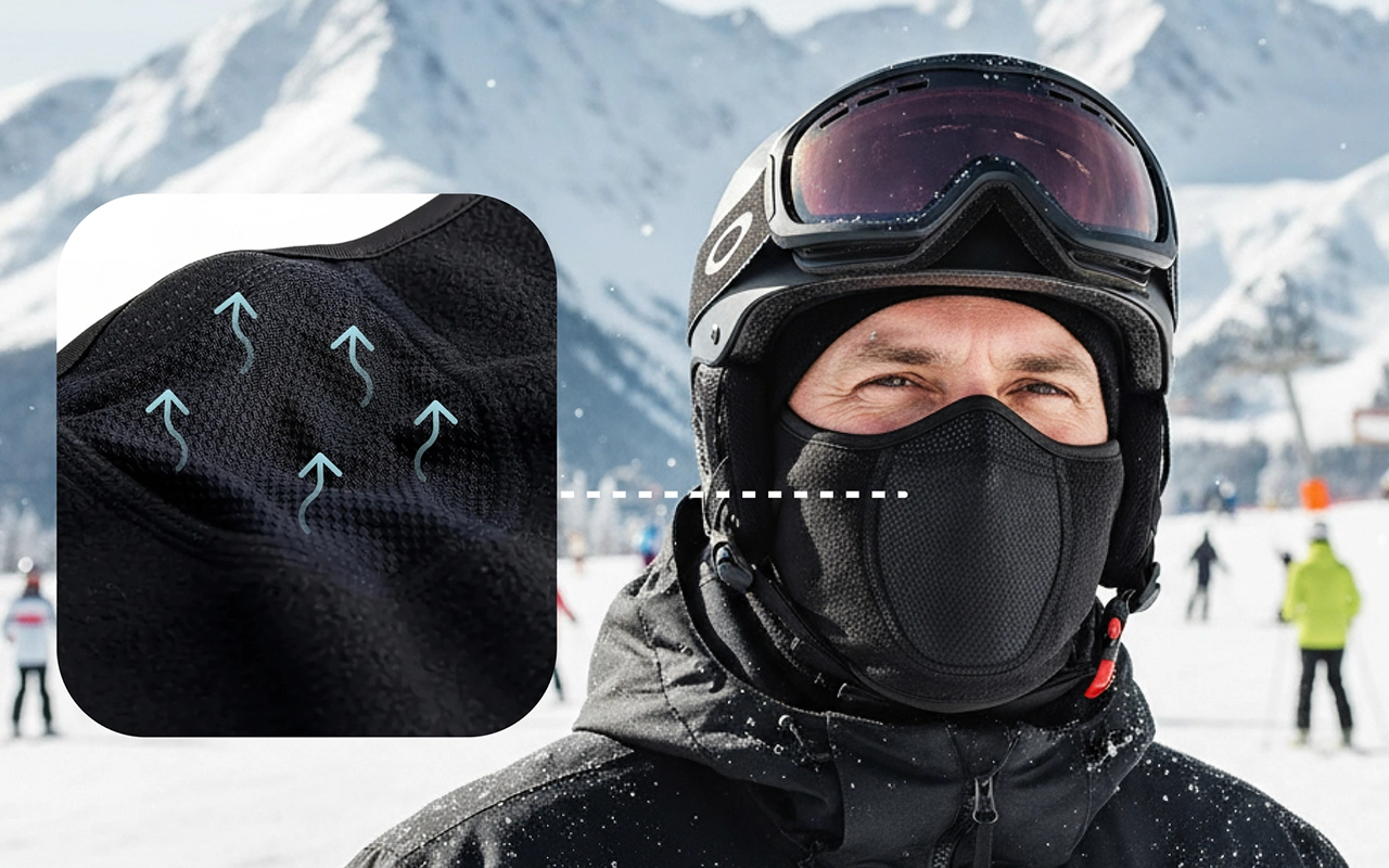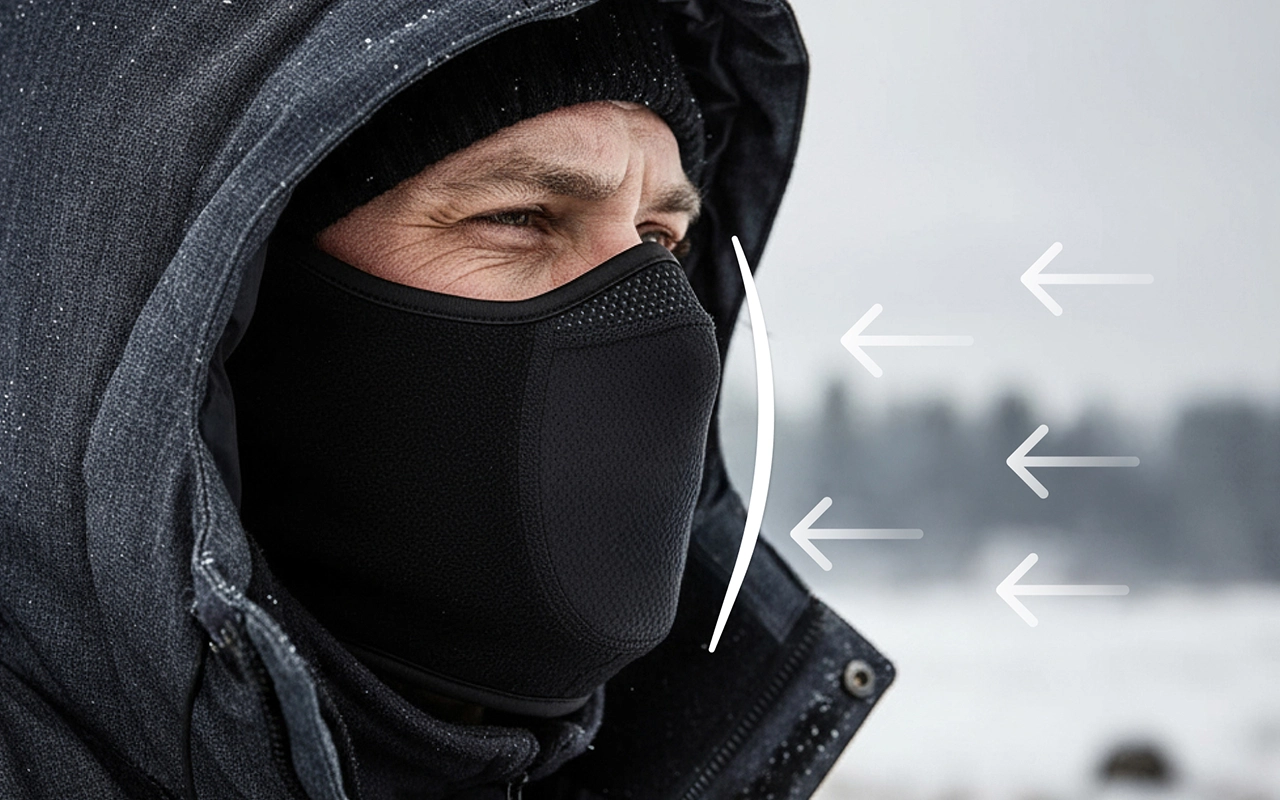 Síeléskor viseltem a polár maszkot és nagyon lenyűgözött. Egész nap a helyén maradt, könnyen beszélhettem és lélegezhettem benne.