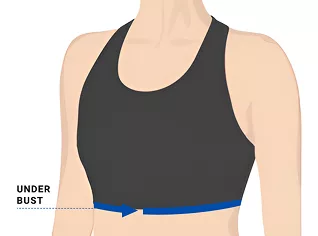- 2. Az alátámasztás mérése érdekében tekerd a mérőszalagot a bordáid köré, közvetlenül és egyenletesen a mell alá.