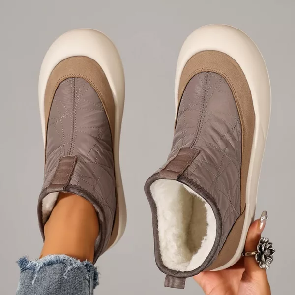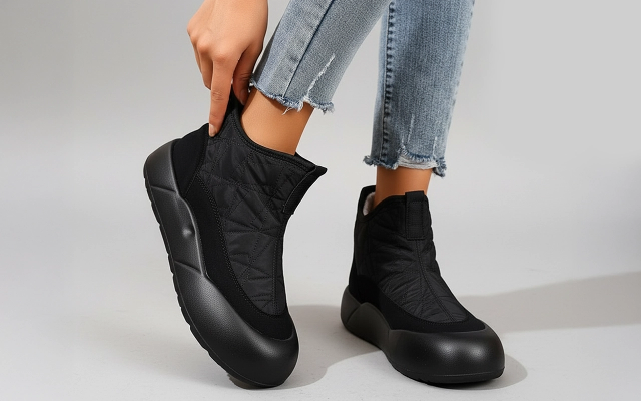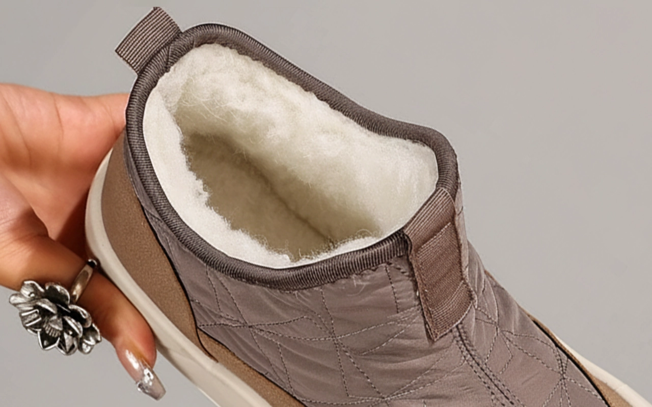 A plüss bélés körülöleli a lábujjakat és kizárja a hideg szelet. Vastag szigetelés garantálja a meleget a hűvös reggeleken is.