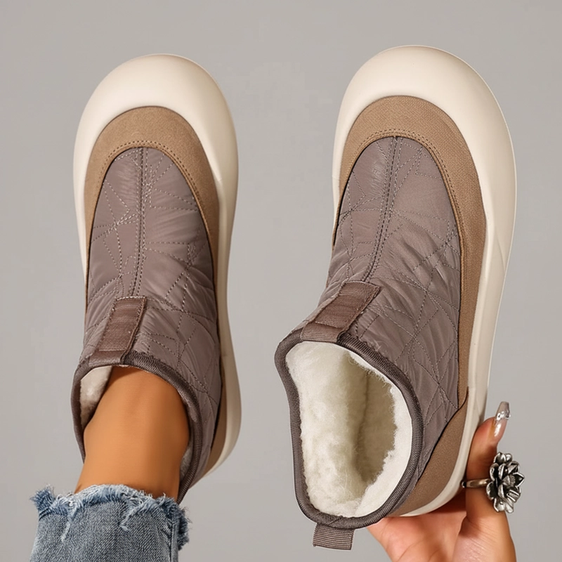 A plüss bélés körülöleli a lábujjakat és kizárja a hideg szelet. Vastag szigetelés garantálja a meleget a hűvös reggeleken is.