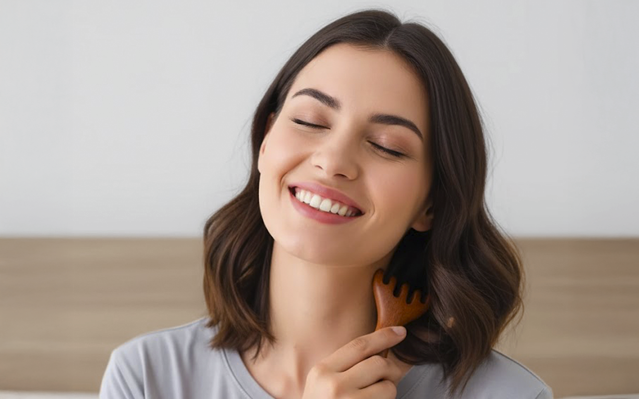 Gyengéd, lekerekített fogak masszírozzák a fejbőrt és enyhítik a feszültséget. Felfrissülést érezhet, ahogy a feszültség minden mozdulattal oldódik.