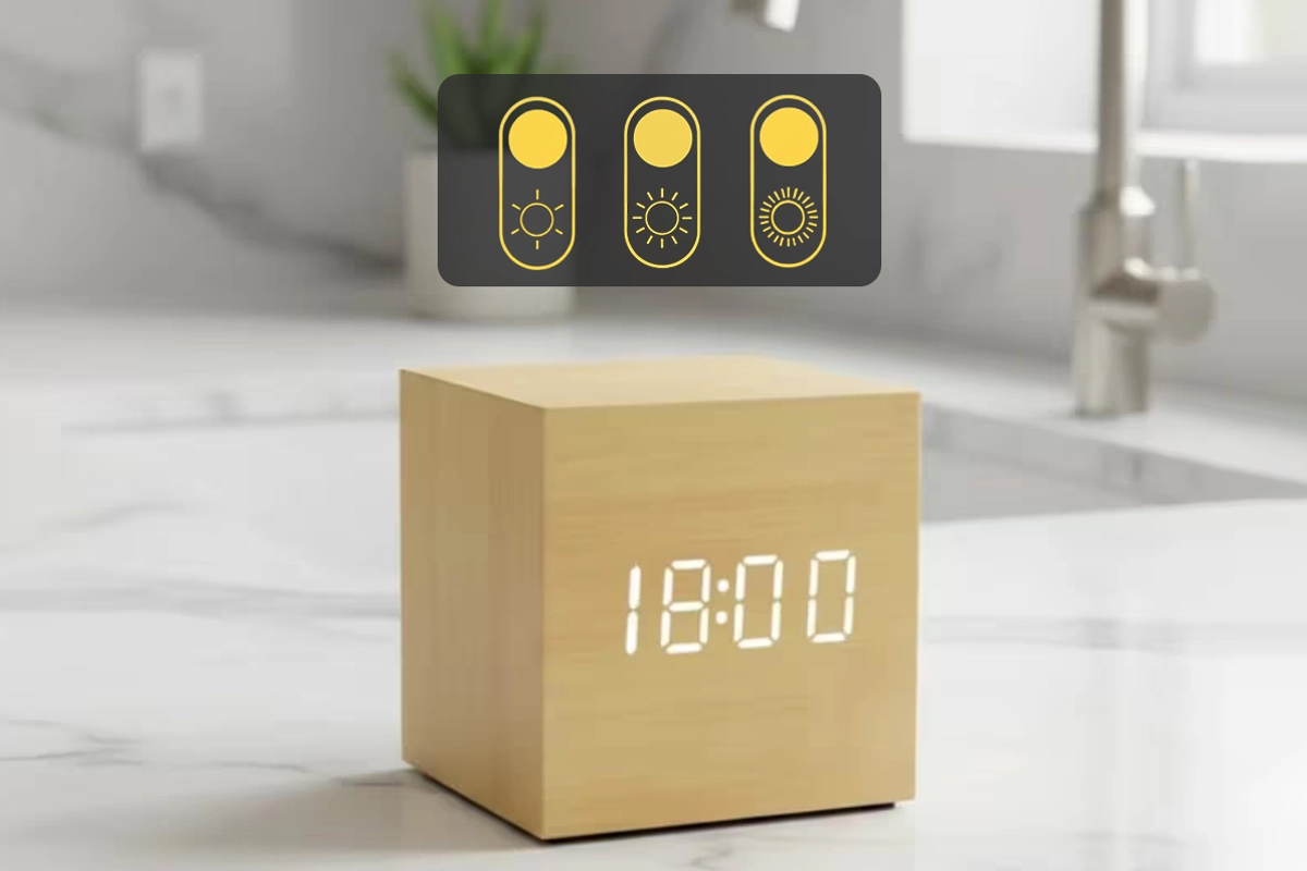 Nagyon tetszik a lágy kijelző – még sötétben is le tudom olvasni az időt, anélkül hogy bántaná a szemem. A fa dizájn otthonossá teszi a szobámat.