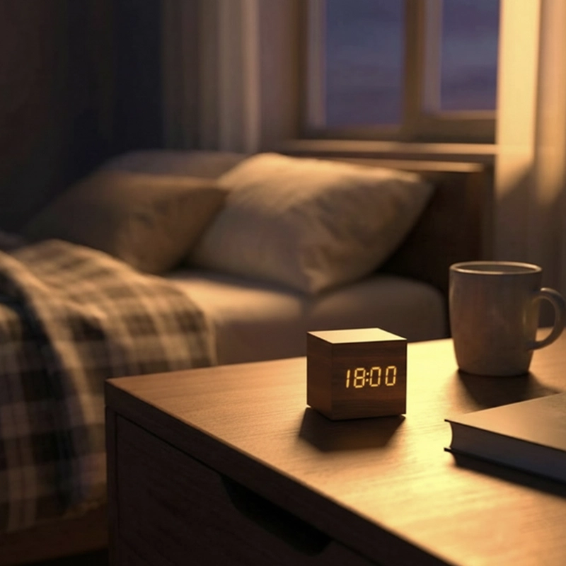 Már nincs szükségem a telefonomra ébresztőként. Ez a fa kocka megbízható, és rendezetté teszi a helyemet. Nagyon könnyű beállítani.