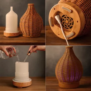 Nagyon egyszerű használni és újratölteni. Szeretem a csendességét, csak a relaxáló pára és a kellemes éjszakai fény árulkodik a működéséről.