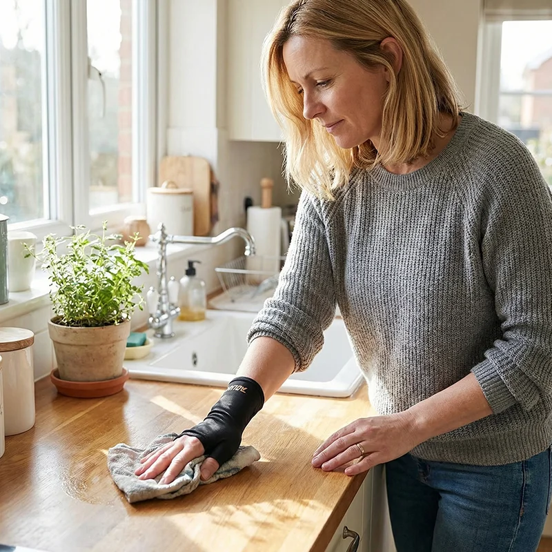 A légáteresztő, rugalmas anyag gyengéden körbeöleli a kezét az egész napos kényelemért. Nincs csípés vagy csúszkálás, így viselés közben végig egyenletes támaszt nyújt.